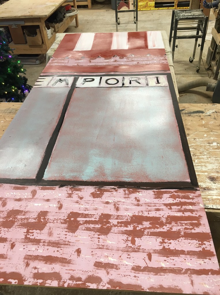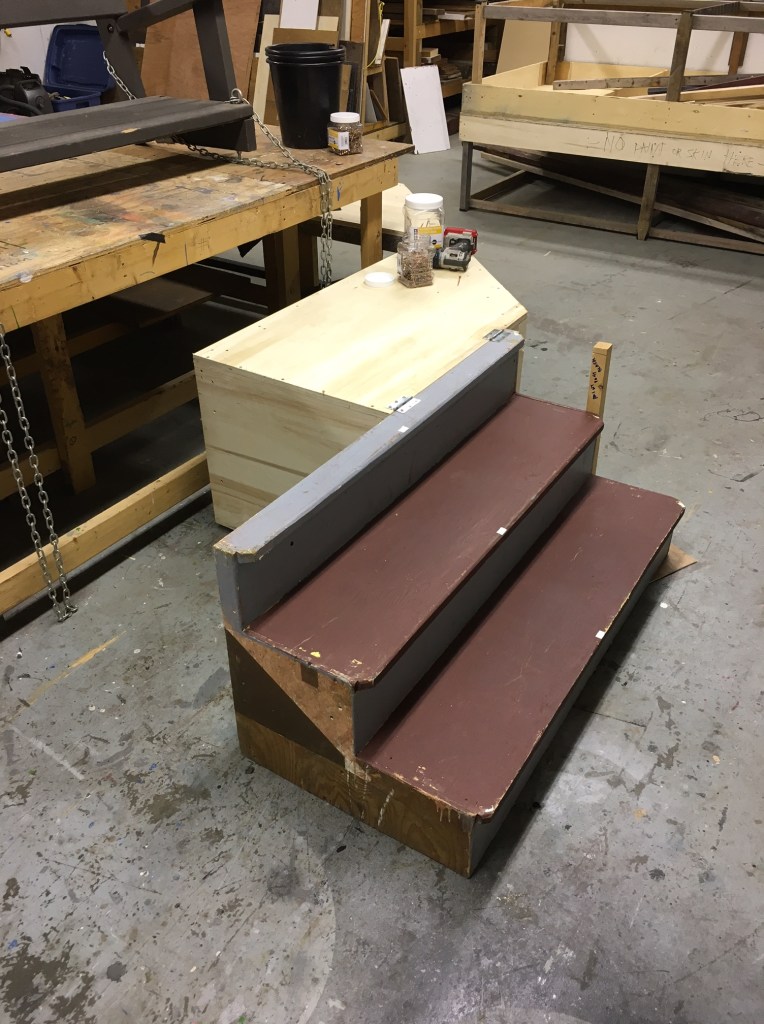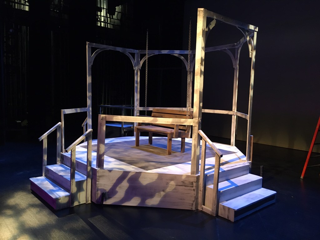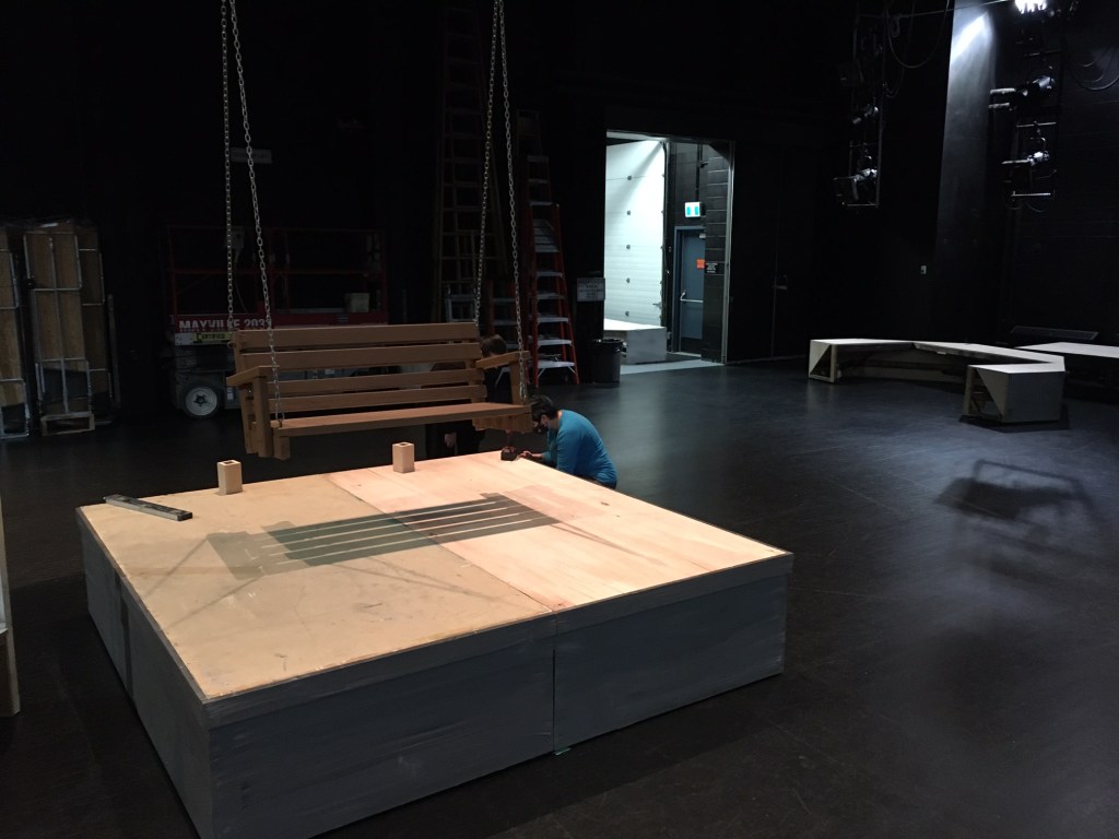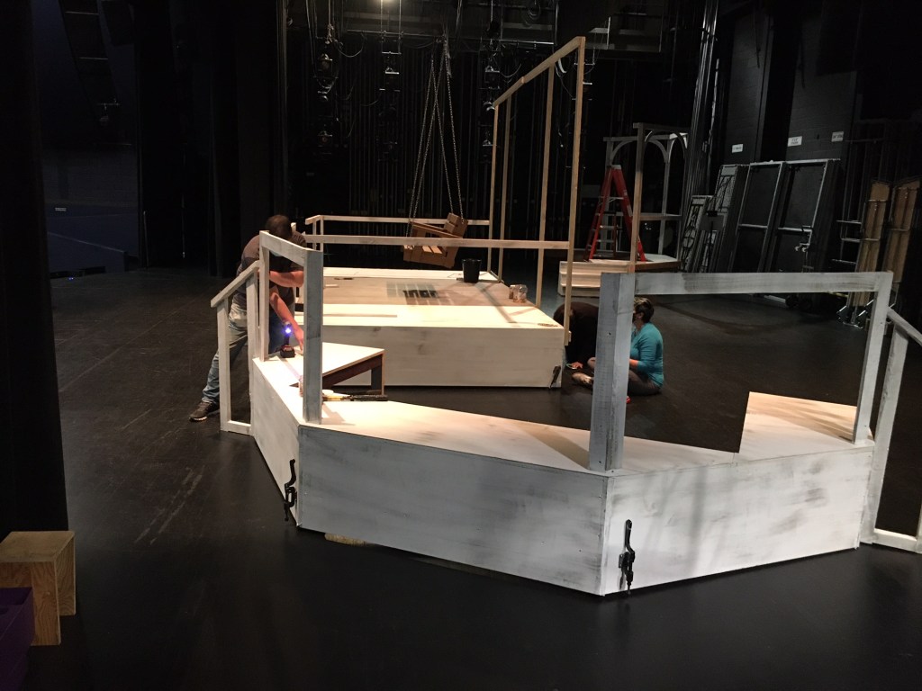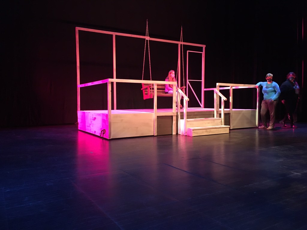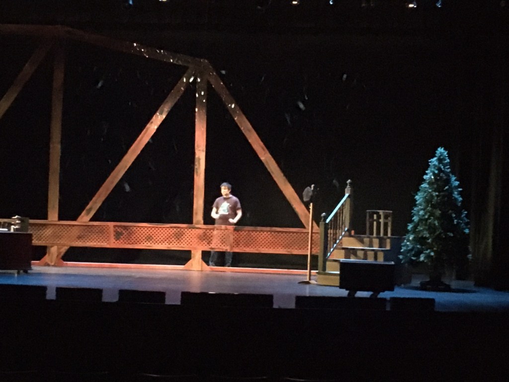 We did have the advantage of a fly system and a fly operator. Flies are basically long pipes on ropes that can be lowered and raised – and in this case, moved up and down to shake fake snow through the holes of a muslin tarp…