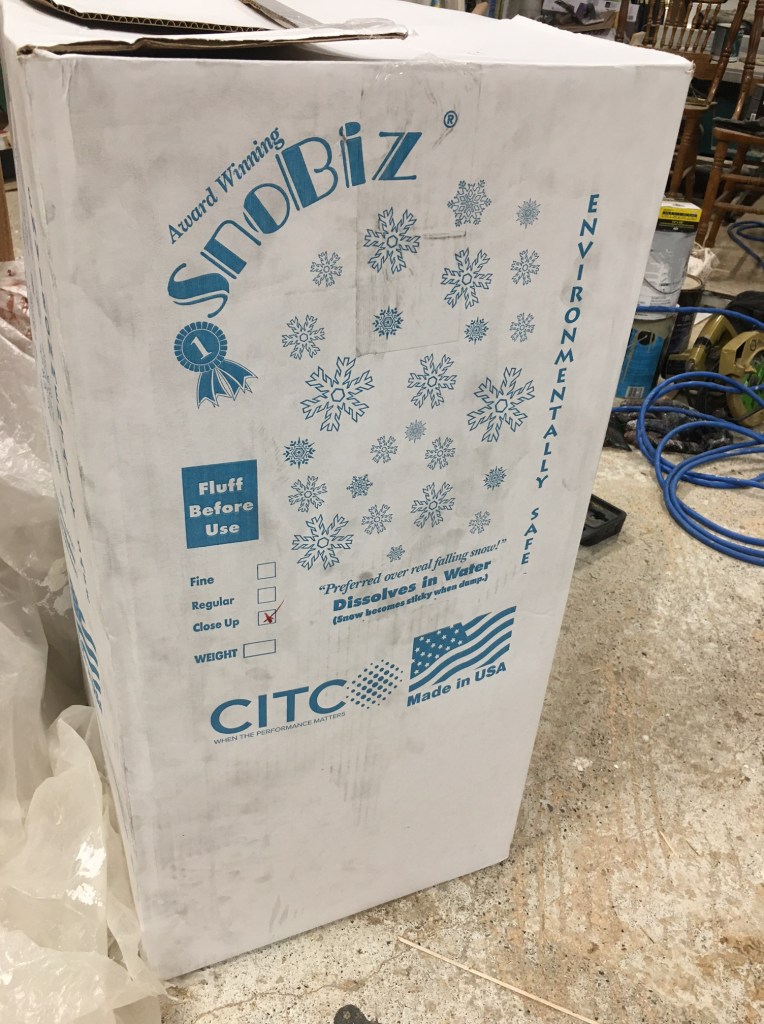 Next I added some fake snow. I bought some at HollyNorth, which is a cool store in Vancouver that caters to film companies. I wanted something light-plastic flakes would have been preferable-but settled on their biodegradable stuff.