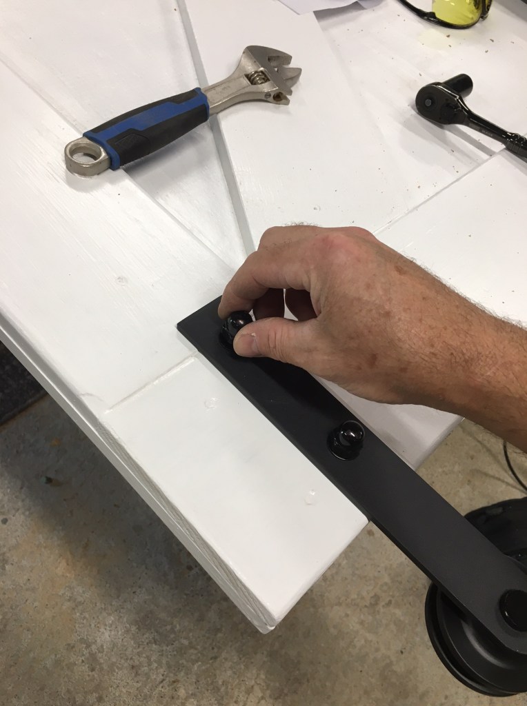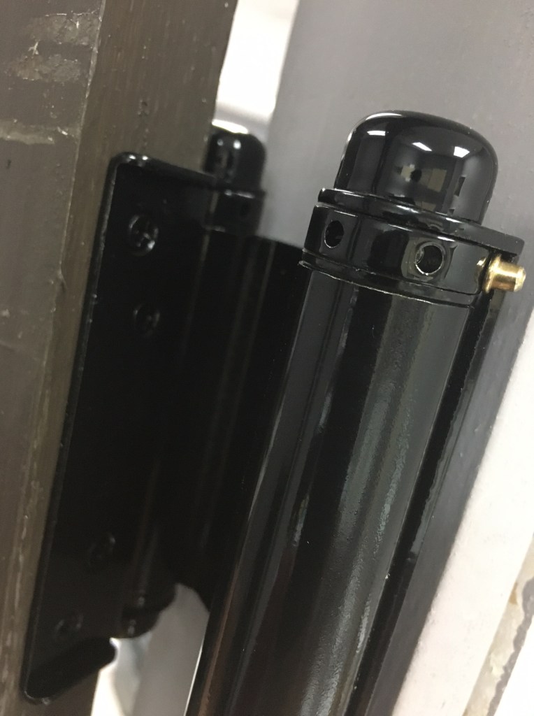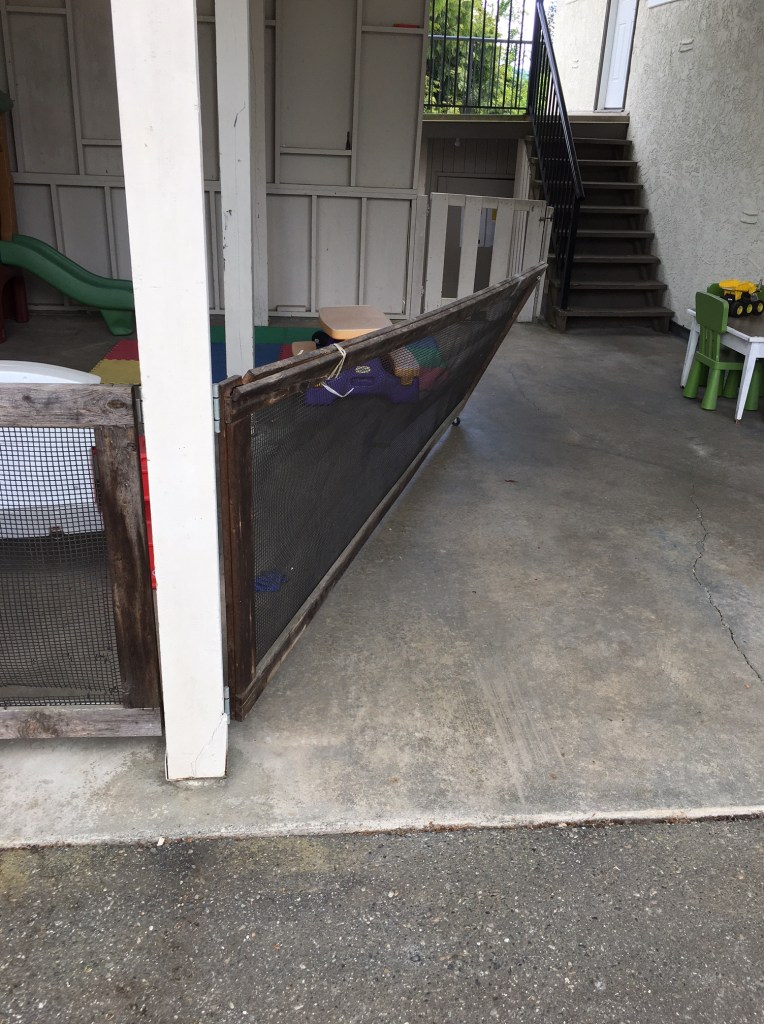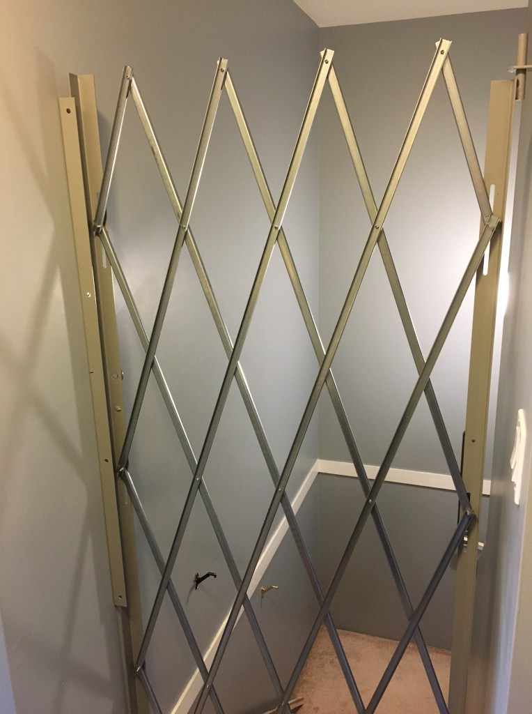Then I installed a metal security gate for Shelley. She measured and ordered it and it is a great product from ULine. Luckily the wall studs were in a pretty good place so there wasn’t much modification needed. It folds up and swings out of the way into a small 6 inch bundle when not in use. (It is not for security, but for safety.)