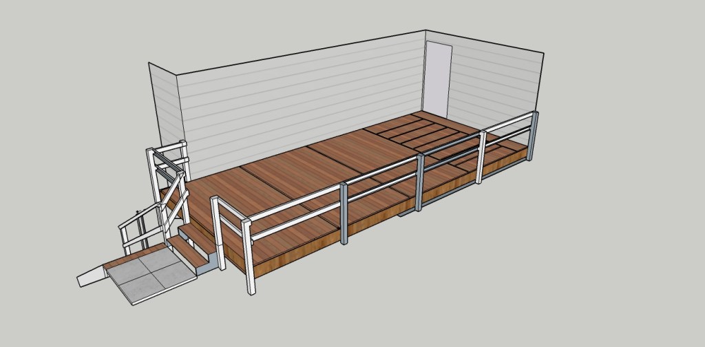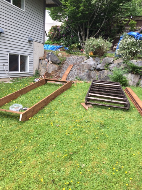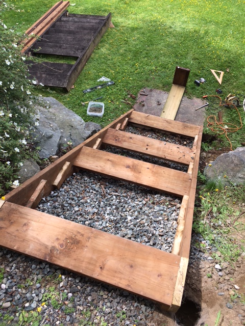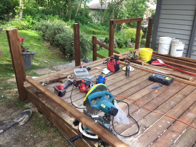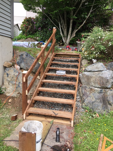 I spent a week building. First I replaced the old stairs. I made them almost exactly the same except I added some posts for a railing.
