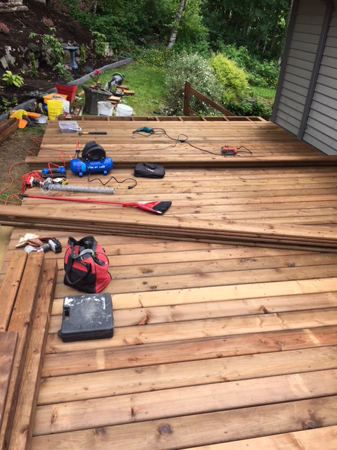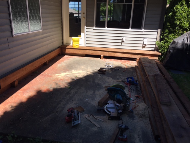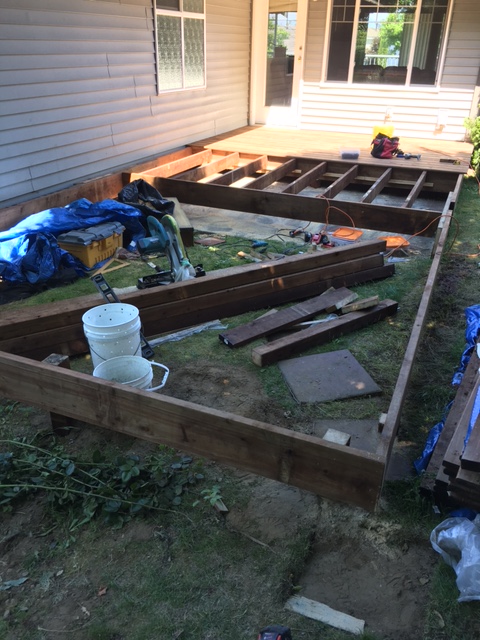 Next I started on the deck. I worked my way away from the house in sections so that my customers could still access the backyward without climbing over framing. It is 12 feet wide by 25 feet long.