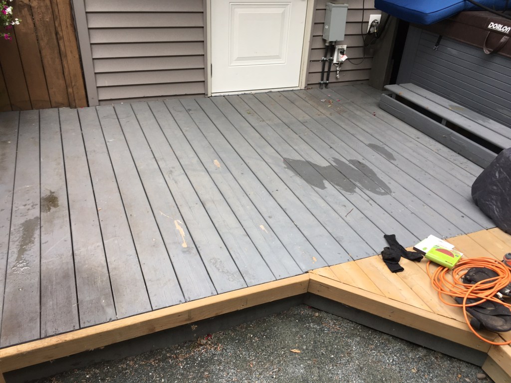 There was still a lot to do by hand – deck boards aren’t level – and I had to sand between them by hand as well. But it turned out ok.