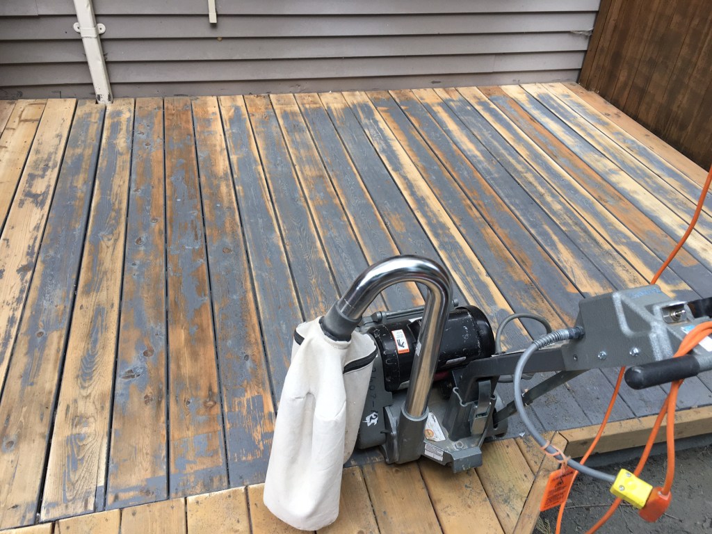 Marnie hired me to sand (part of) her deck. Over the phone I quoted 1-2 days. When I showed up and saw the tiny thing, I thought I had it beat. But sanding was very slow.