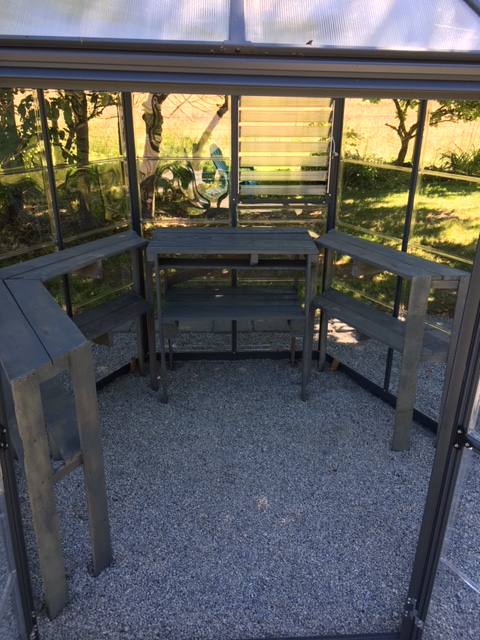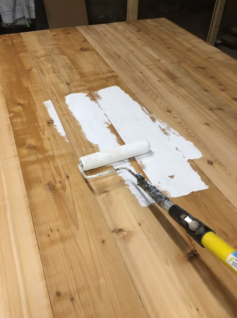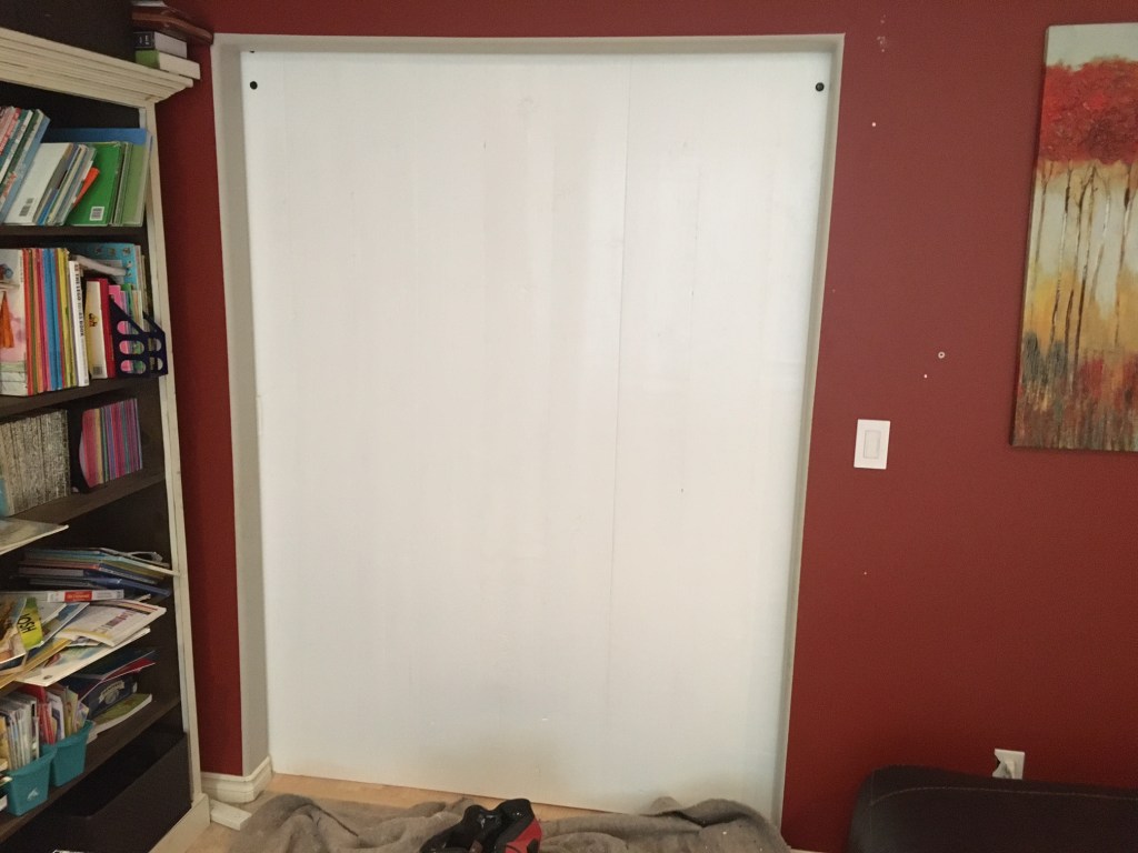 It was a bit sad to paint the nice cedar white, but that is the colour that was needed. Painting cedar doesn’t always work as some of the natural oils bleed through, but with a coat of Kilz paint and 2 coats of cabinet paint, it looked alright.