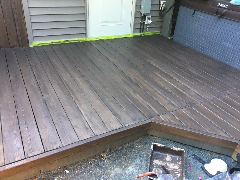 Now for the coffee part. The homeowner chose a semi-transparent stain called “Coffee.” I stained it the following week on a warm day. The fence got a quick coat too.