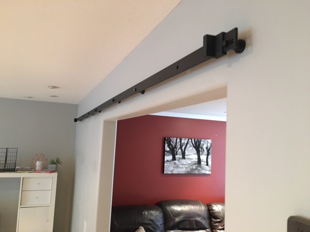 She ordered an 11 foot track. Installing it was not straightforward thanks to odd stud locations.