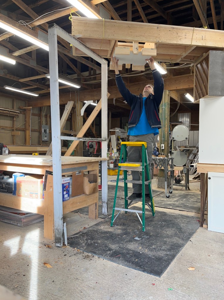Gallery 7’s latest one-man Christmas show is now playing. This was one of the simplest builds I’ve done for them. It needed to disassemble quickly due to some scheduling conflicts at the venue; the set designer (Lora-Lynne Frewing) did a wonderful job of keeping the set to a minimum.