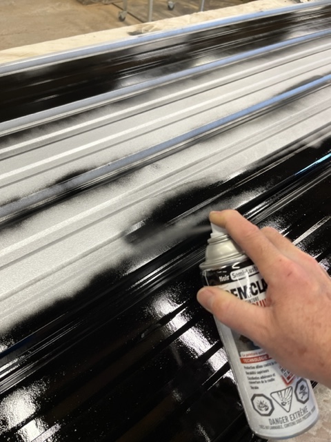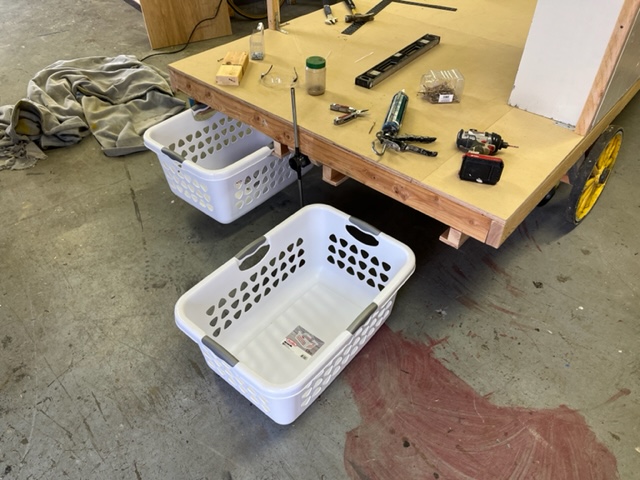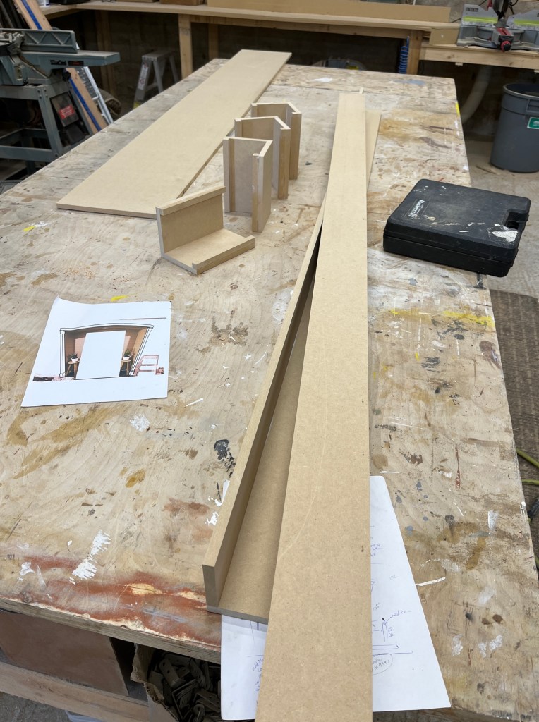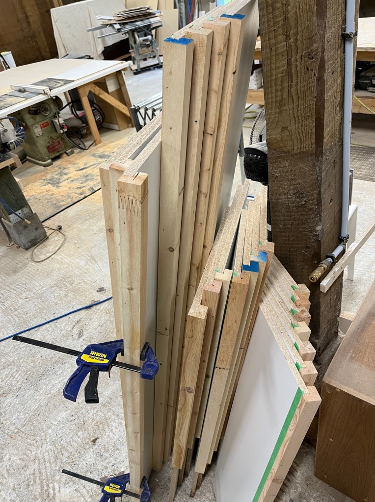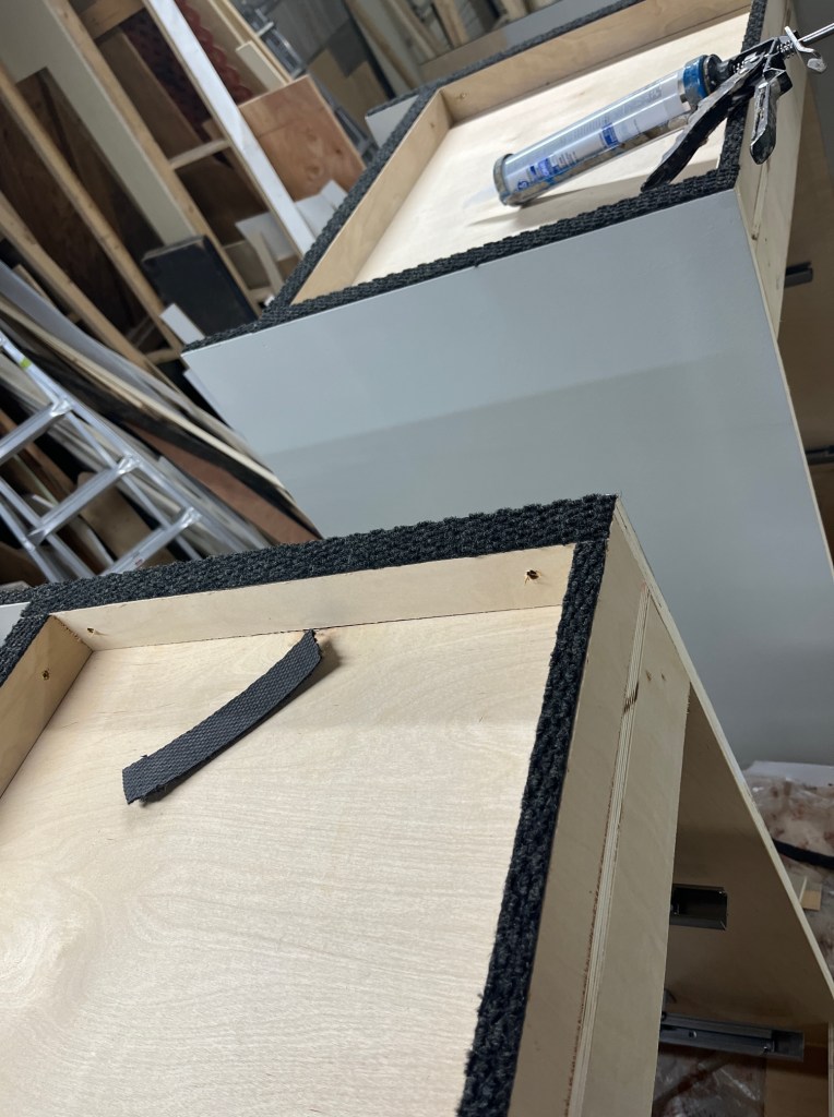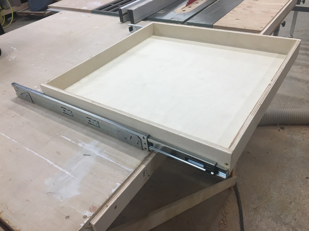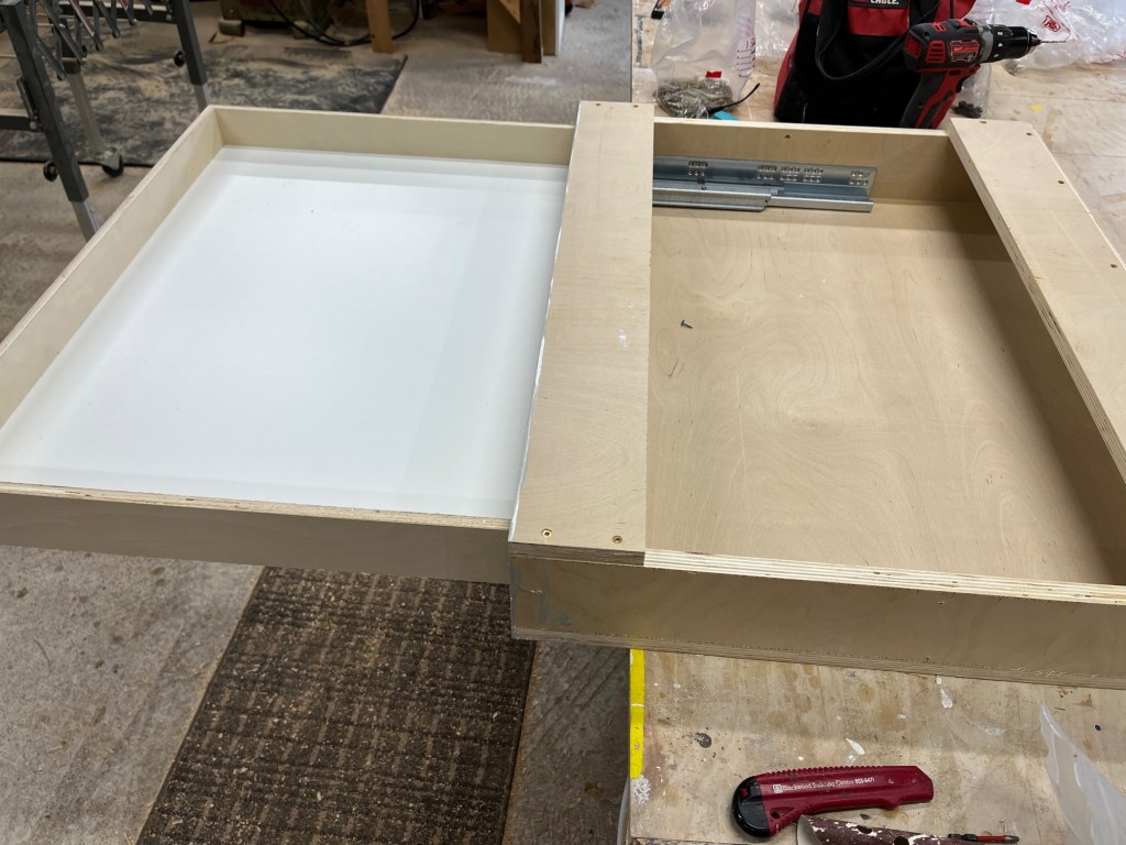 Then I sanded the doors and started painting them. I sprayed them with cabinet paint. I also made some sliding drawers for the lower cabinets.