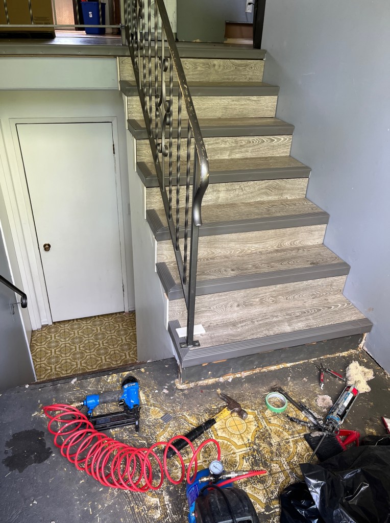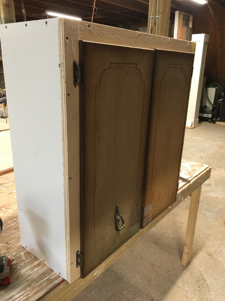 The doors got installed. Pomi spray painted her original hinges and handles and they went back on. (I prefer to use the original hinges because the new ones these days seem to be a lot flimsier.)