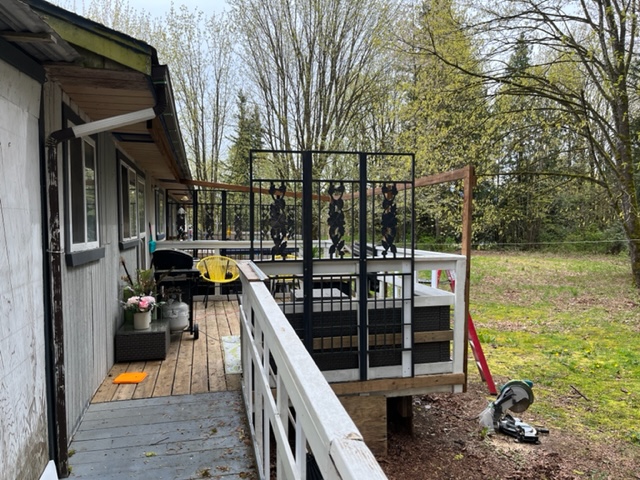 I used 2x4s to build the frame and attached it to the railings. There is not a lot of weight. Normally thicker posts and joists would be recommended.
