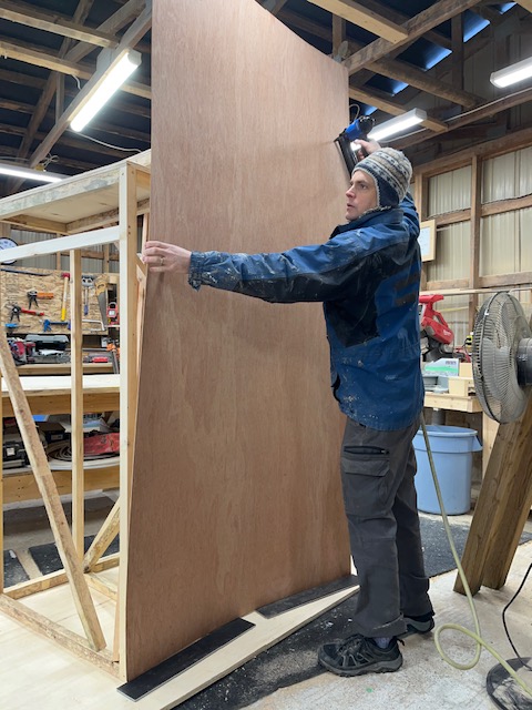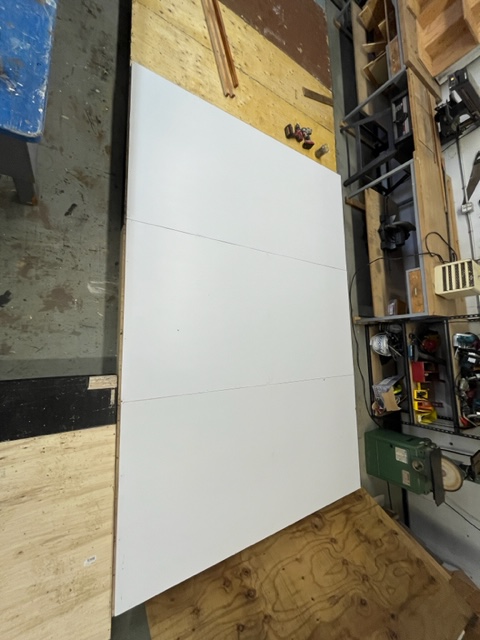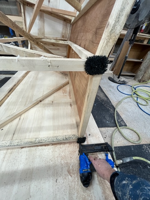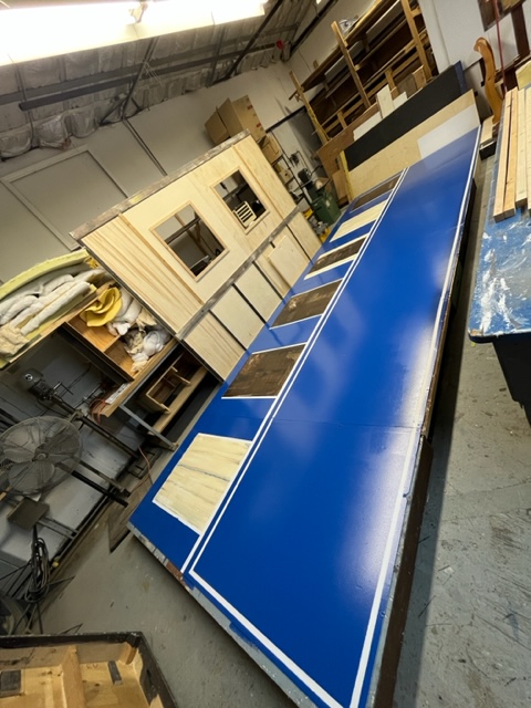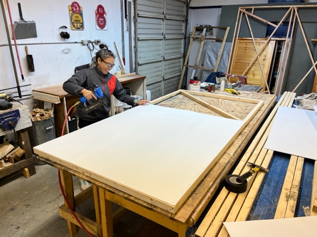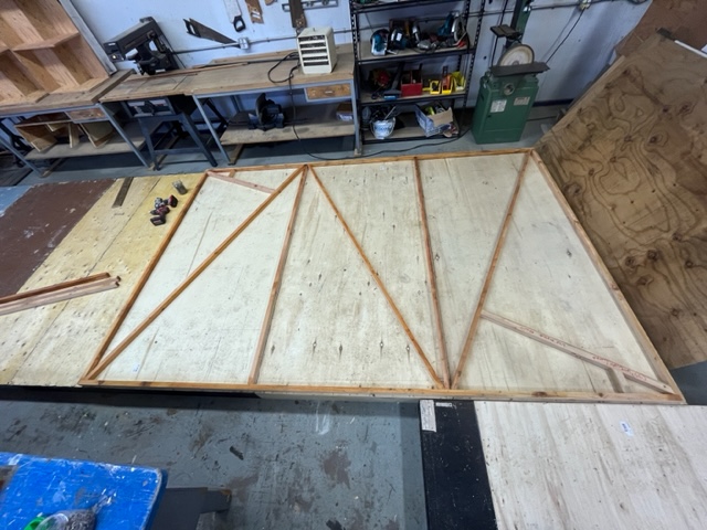 Here are some pictures of the flies. I made them in 8×12 sections with plenty of cross-bracing to help eliminate sag. (They are 24 feet long) One fly has 3 working doors so had to be structurally sound.