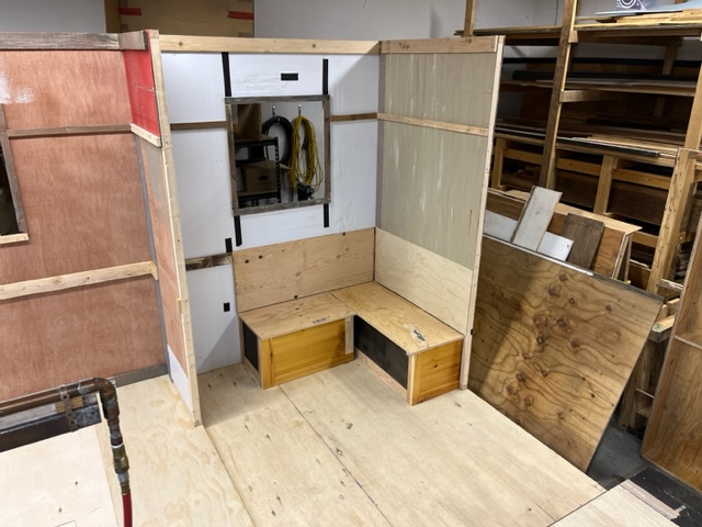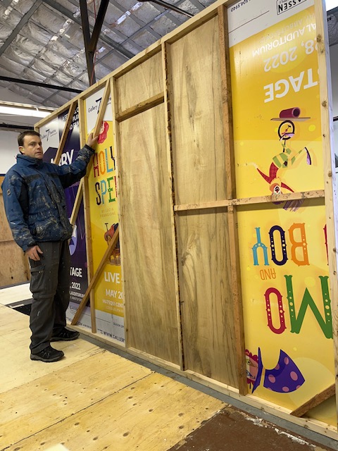 For those 3 years, I was able to store most of the set in G7’s storage container, plus a bit at their office and a bit in my workshop. It was a matter of re-assembling what we had, checking with the stage management team about any changes, and finishing the paint job.