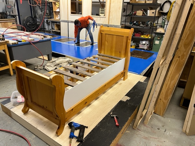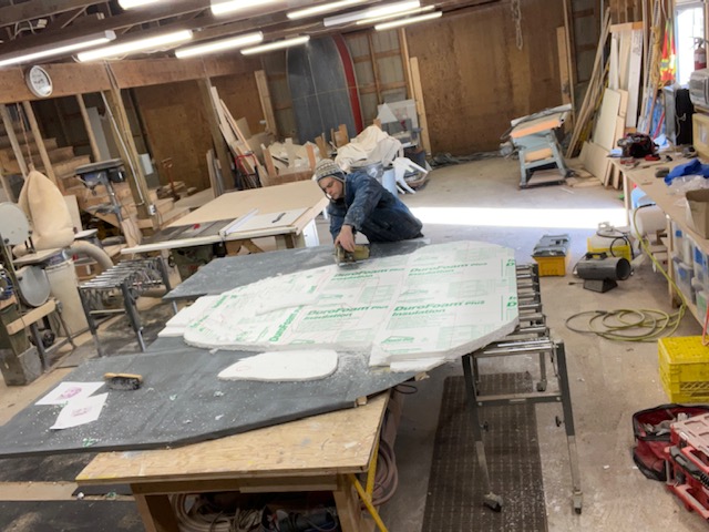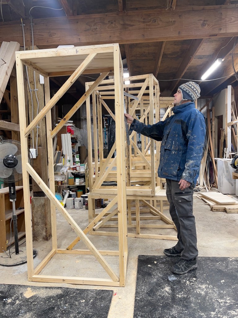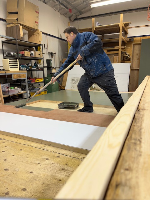 Jeff painted the outside of the train, and my assistant carpenter Karen worked on walls.