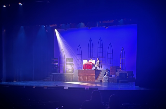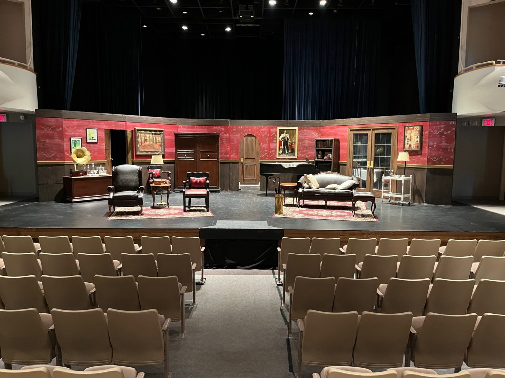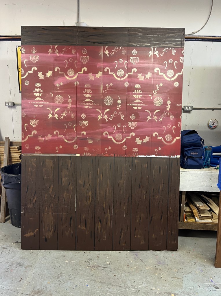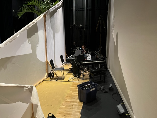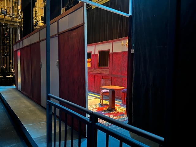 In the theatre: I also made large screens to hide the musicians. Thanks to Lighting Designer Victoria Bell for a great look!