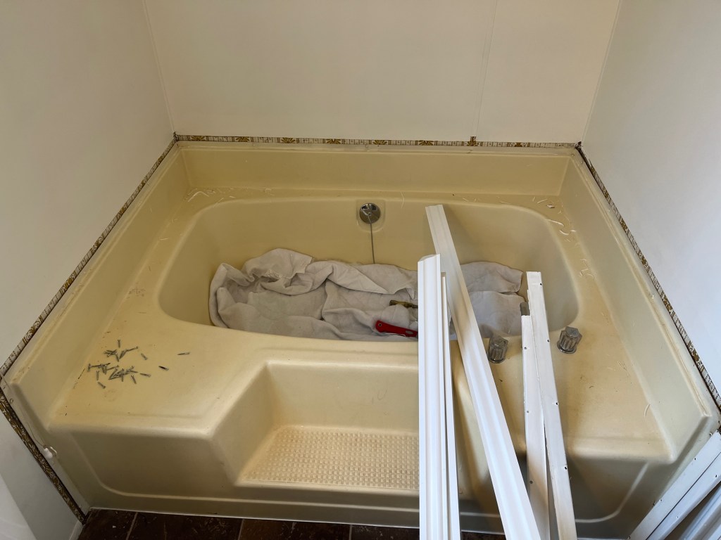I was recently asked to spruce up some mouldings surrounding a large bathtub in a modular style home.