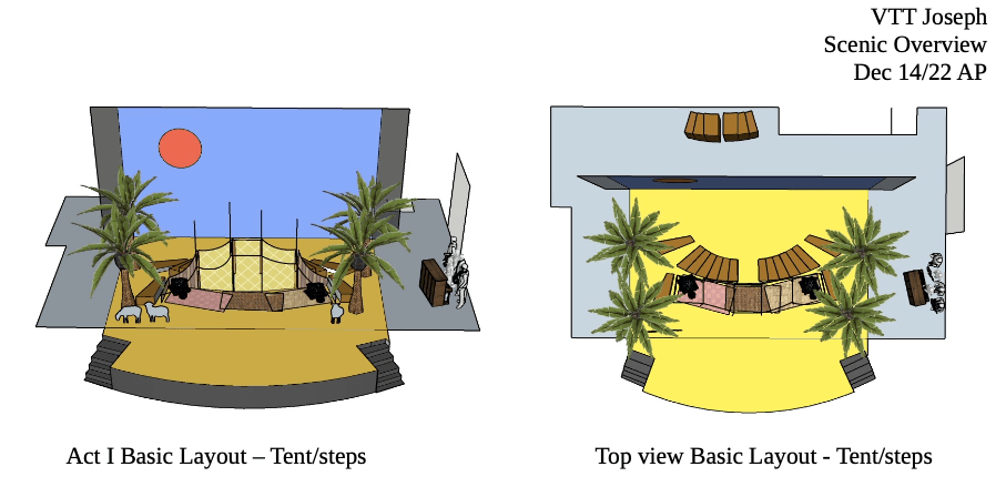 I have built a set previously for Gallery 7 for the musical Joseph and the Amazing Technicolor Dreamcoat. I applied for a set design contract for an elementary school, Vancouver Talmud Torah, for this same show, and also built it. It was slightly more work than I expected, and I expected a lot! But it turned out very well and they had a great run at the Norman Rothstein Theatre in March 2023.