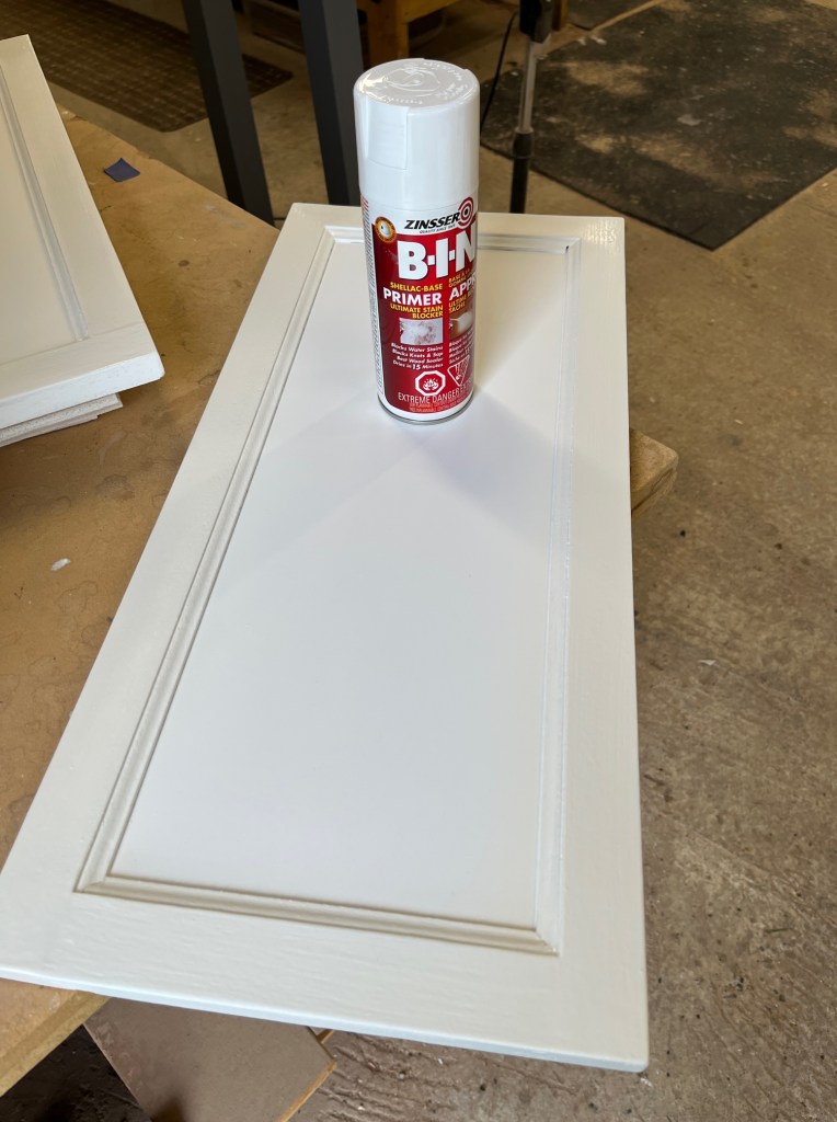I had some trouble with bleed-through while painting. Even with several layers of different types of primer and several layers of premium cabinet paint, the frames were slightly yellow. Finally I did 2 minutes of google research and found I needed to seal it with shellac first. The Zinsser BIN shellac primer worked wonders and was very quick. I still had to do some more sanding, filling/caulking, and repainting anyway as they weren’t good quality enough for my customer at first, but they turned out very nice.
