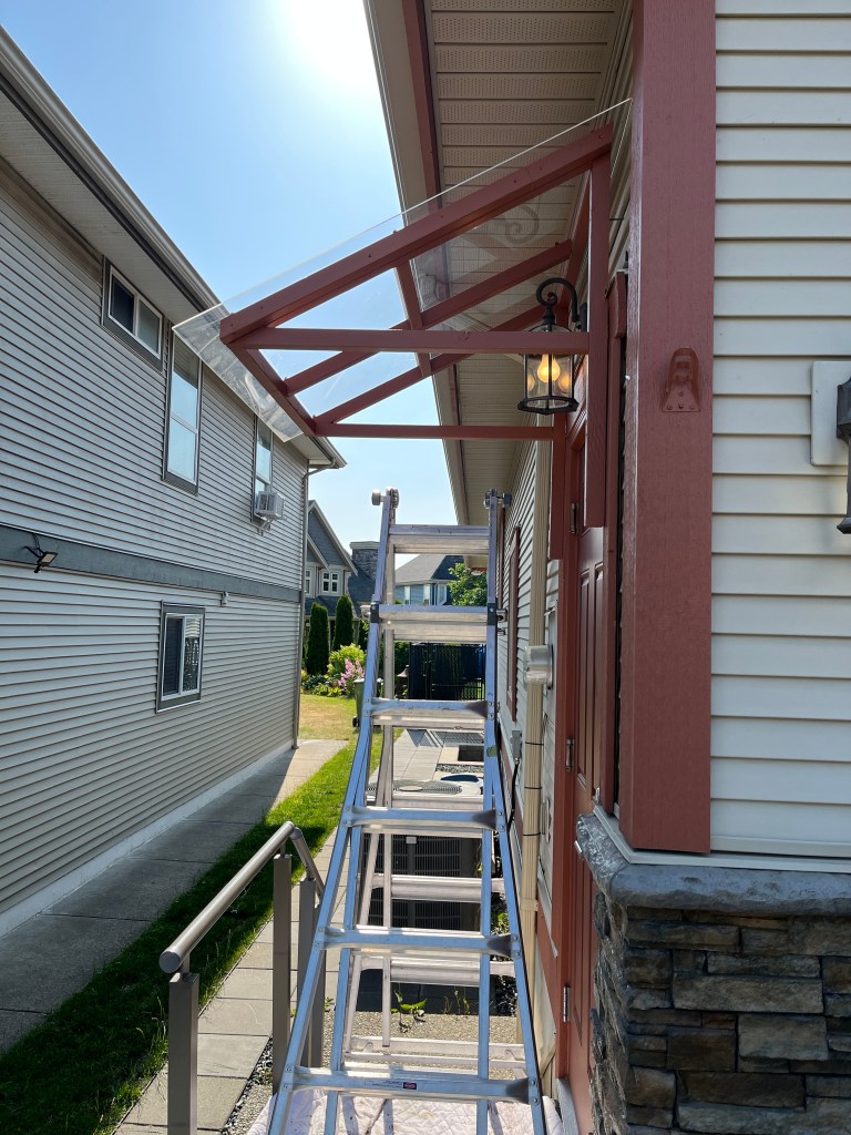 I built a small roof for Sandee to keep the rain off an exterior door a little bit. She wanted plexiglass so I did buy a piece and stick it up there… haven’t much experience with it so I installed it with roofing screws with rubber washers, and pre-drilled oversized holes. Seemed to turn out ok!