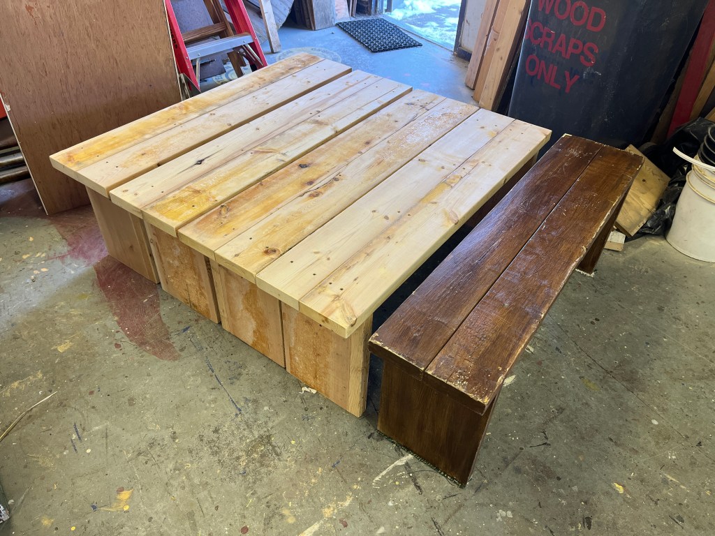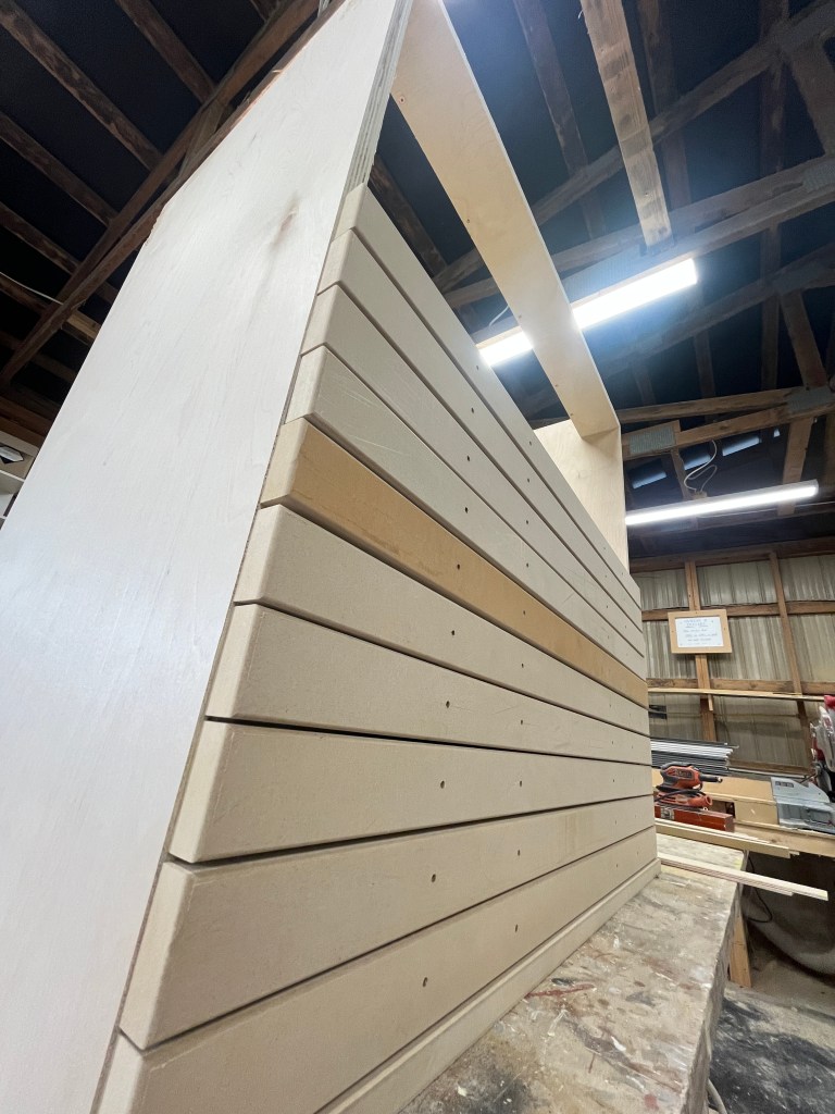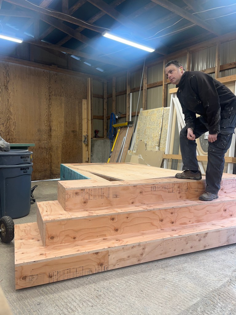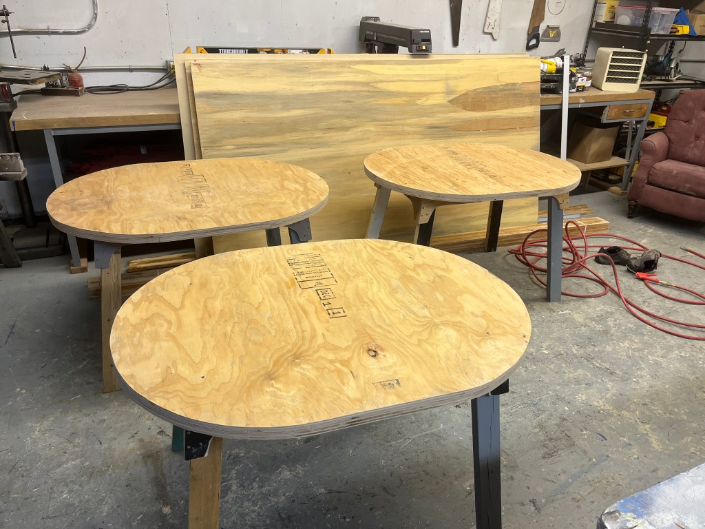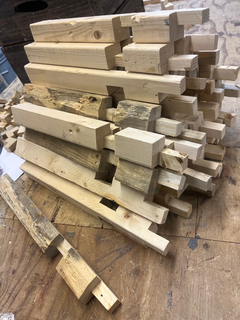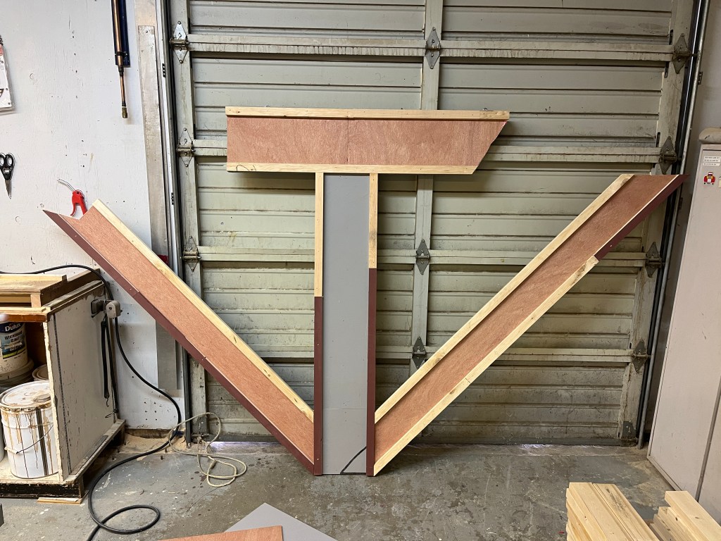 That was the basic set – arches, stairs, and walls. There were many other set pieces needed for the various scene changes: starting with the beds. I was quite proud of these – I made 8 – all very lightweight and stackable. The challenge was how to keep them from sliding around when the kids were jumping from one to another; some rubber furniture feet helped.