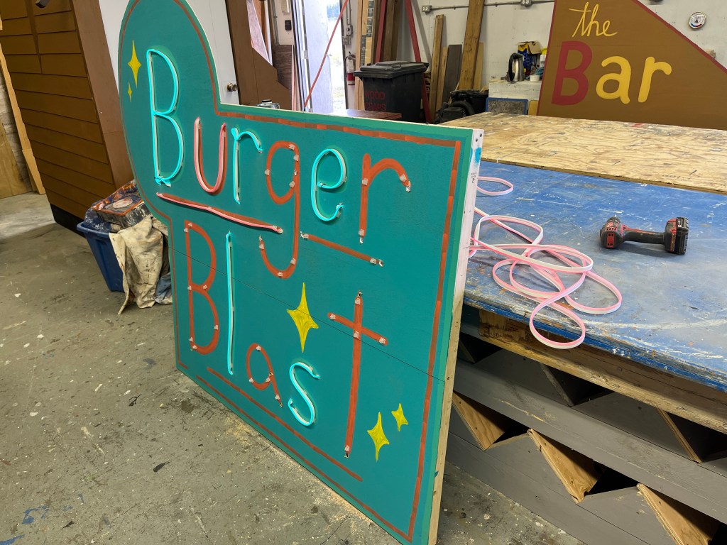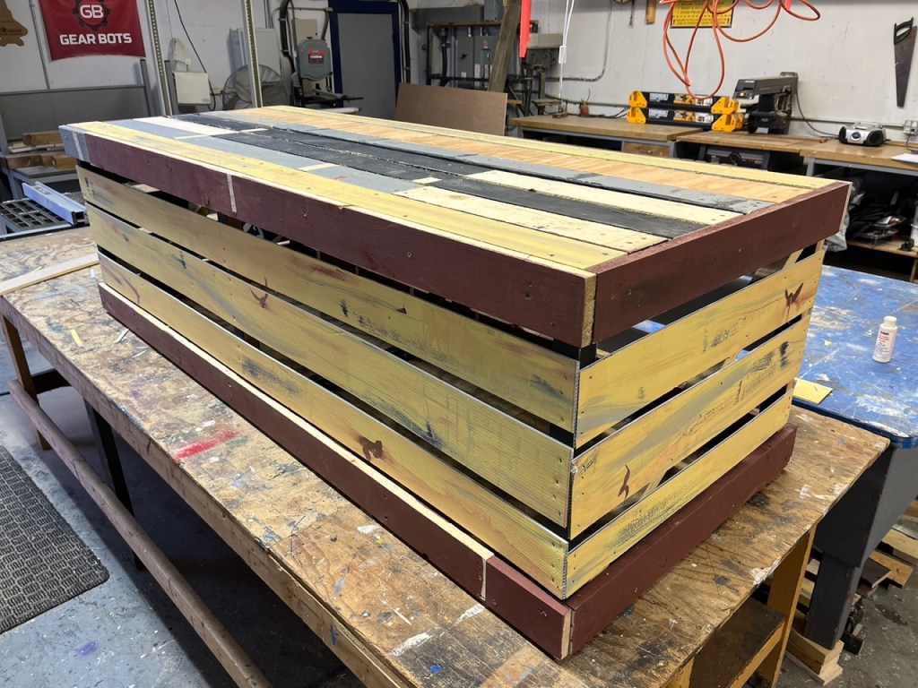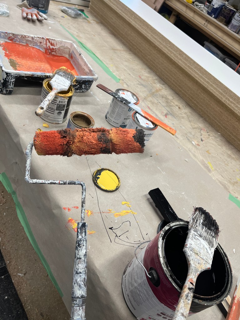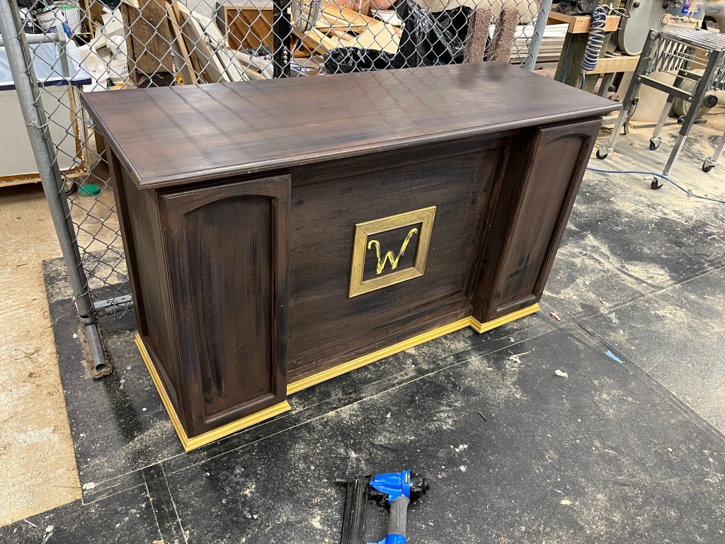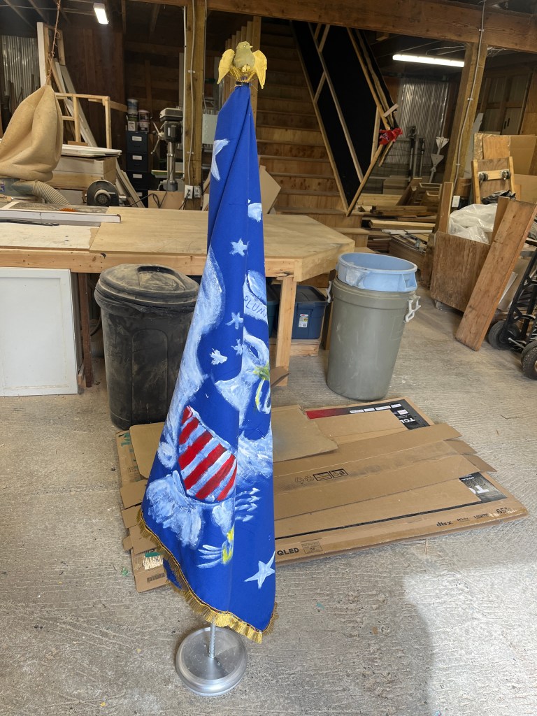Other fun projects/items were the laundry cart, lamppost, garbage can, fire hydrant, filing cabinet, Warbucks desk (which had to get cut lower eventually), and oval office flag.