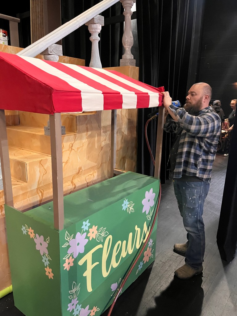 Load in Day came and went and we got everything together and painted. The 11-foot high truck with curved stairs attached worked better than expected. Re-painting the 12- and 18-foot high screens took a lot of my time (to help the projections pop better).